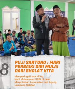 Anggota DPRD Lampung Peringati Isra’ Mi’raj Nabi Adv, Berita, Daerah, DPRD Lampung, Lifestyle, Politik, Sosial|Februari 18, 2023oleh Redaksi Lampung – Puji Sartono, salah seorang anggota DPRD Lampung Fraksi Partai Keadilan