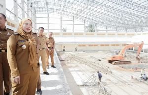 Bandar Lampung – Walikota Bandarlampung, Eva Dwiana meninjau progres proyek pembangunan infrastruktur