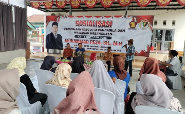 Pringsewu – Pemerintah Pekon Ambarawa Timur, Kecamatan Ambarawa, Kabupaten Pringsewu, memberikan apresiasi atas terselenggaranya Sosialisasi Pembinaan Ideologi Pancasila dan Wawasan Kebangsaan yang diinisiasi oleh Anggota DPRD Provinsi Lampung, Muhammad Reza, pada Sabtu (11/10/2025).