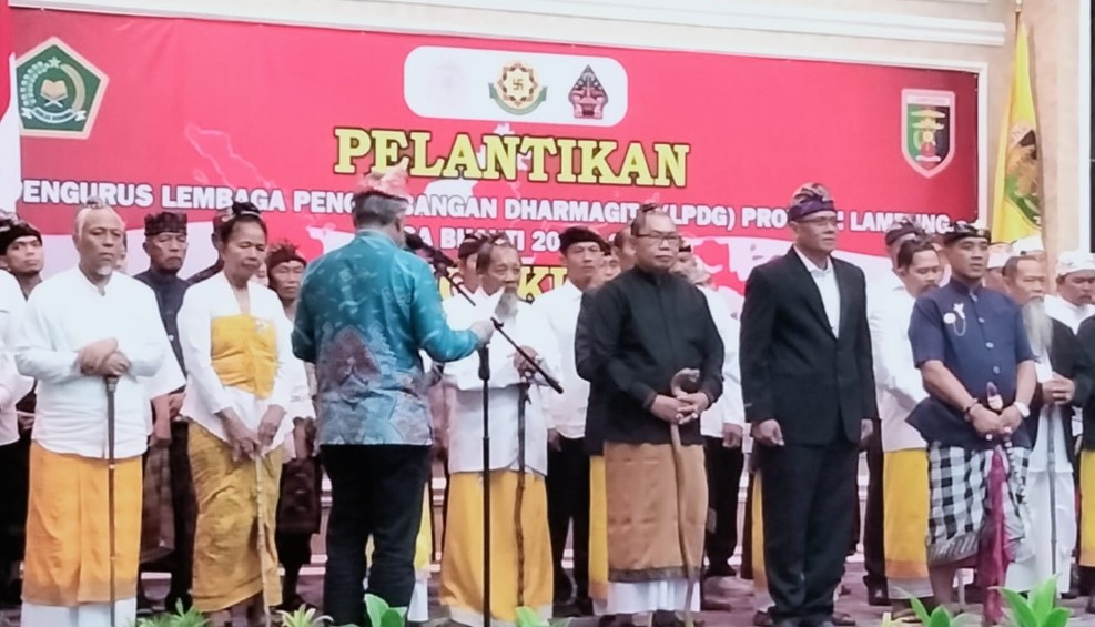 Bandar Lampung, 14 Agustus 2025 – Lembaga Pengembangan Dharma Gita (LPDG) Provinsi Lampung resmi dilantik untuk masa bhakti 2025–2030, bersamaan dengan pengukuhan Pengurus Sabha Kertha dan Majelis Adat Perkraman Provinsi Lampung di Balai Keratun, lingkungan Pemerintah Provinsi Lampung.