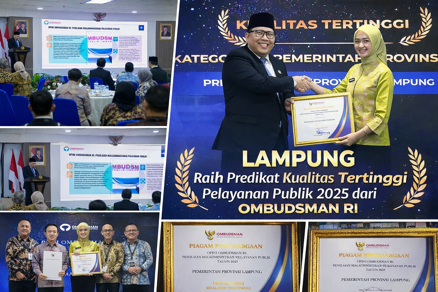 Jakarta – Pemerintah Provinsi Lampung kembali menorehkan prestasi membanggakan di tingkat nasional. Dalam Penilaian Maladministrasi Pelayanan Publik Tahun 2025 yang dilakukan Ombudsman Republik Indonesia, Provinsi Lampung berhasil meraih predikat Kualitas Tertinggi, sekaligus menjadi satu-satunya pemerintah provinsi dari 38 provinsi di Indonesia yang mencapai capaian tersebut.